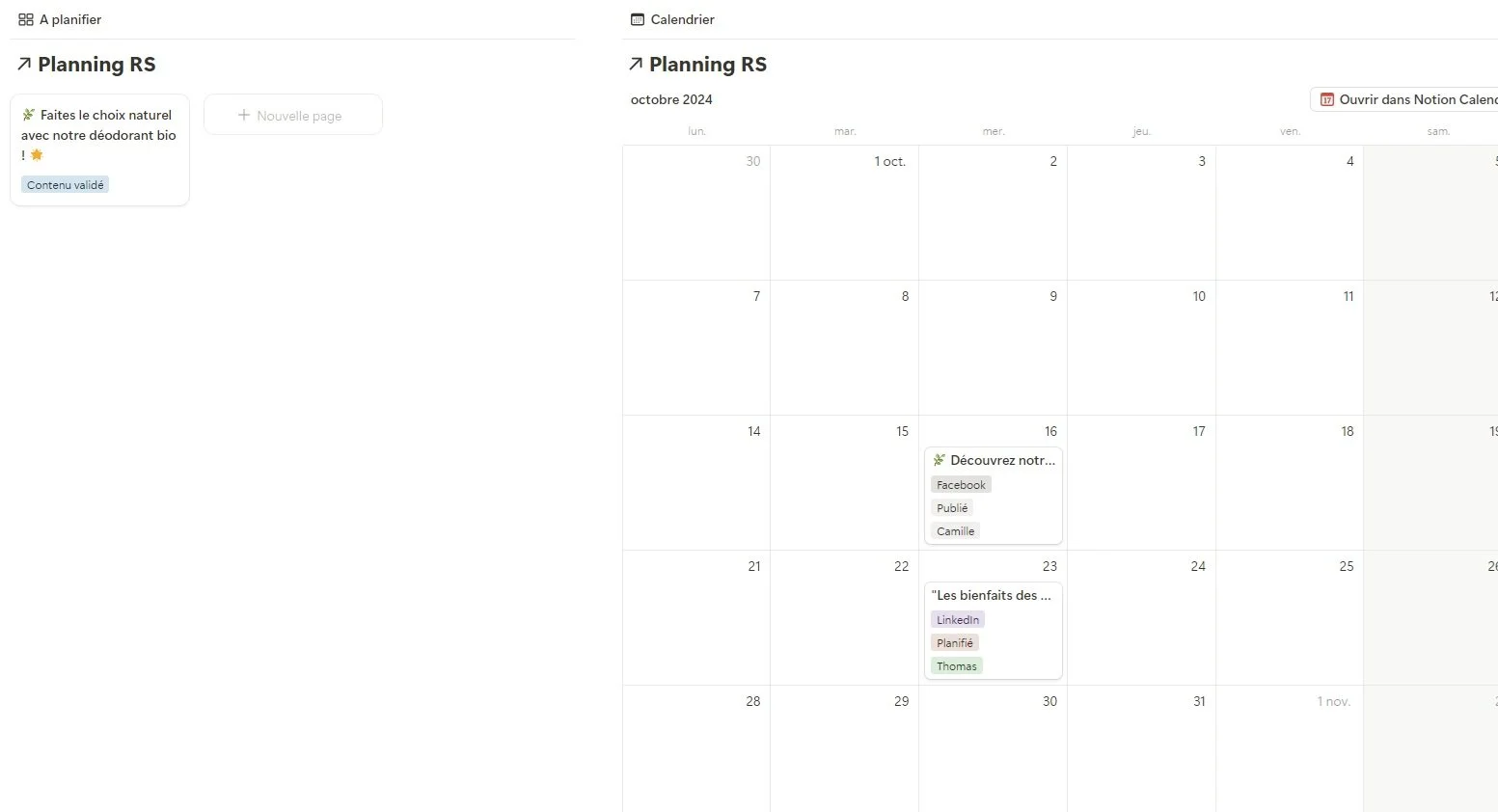 ✔️ Centralisation : tous les contenus et médias sont planifiés et archivés dans Notion, accessibles à toute l'équipe